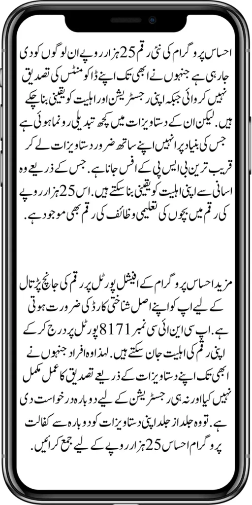 To get the payment of Rs 13,500 under the 8171 Ehsaas Program, the Government of Pakistan has launched a new document verification procedure, in which all eligible individuals will be able to easily get this payment of Rs 13,500 by completing the verification of their documents. More information about this payment has been provided to you in our article above, after knowing which you will be able to ensure that you can easily get this payment.