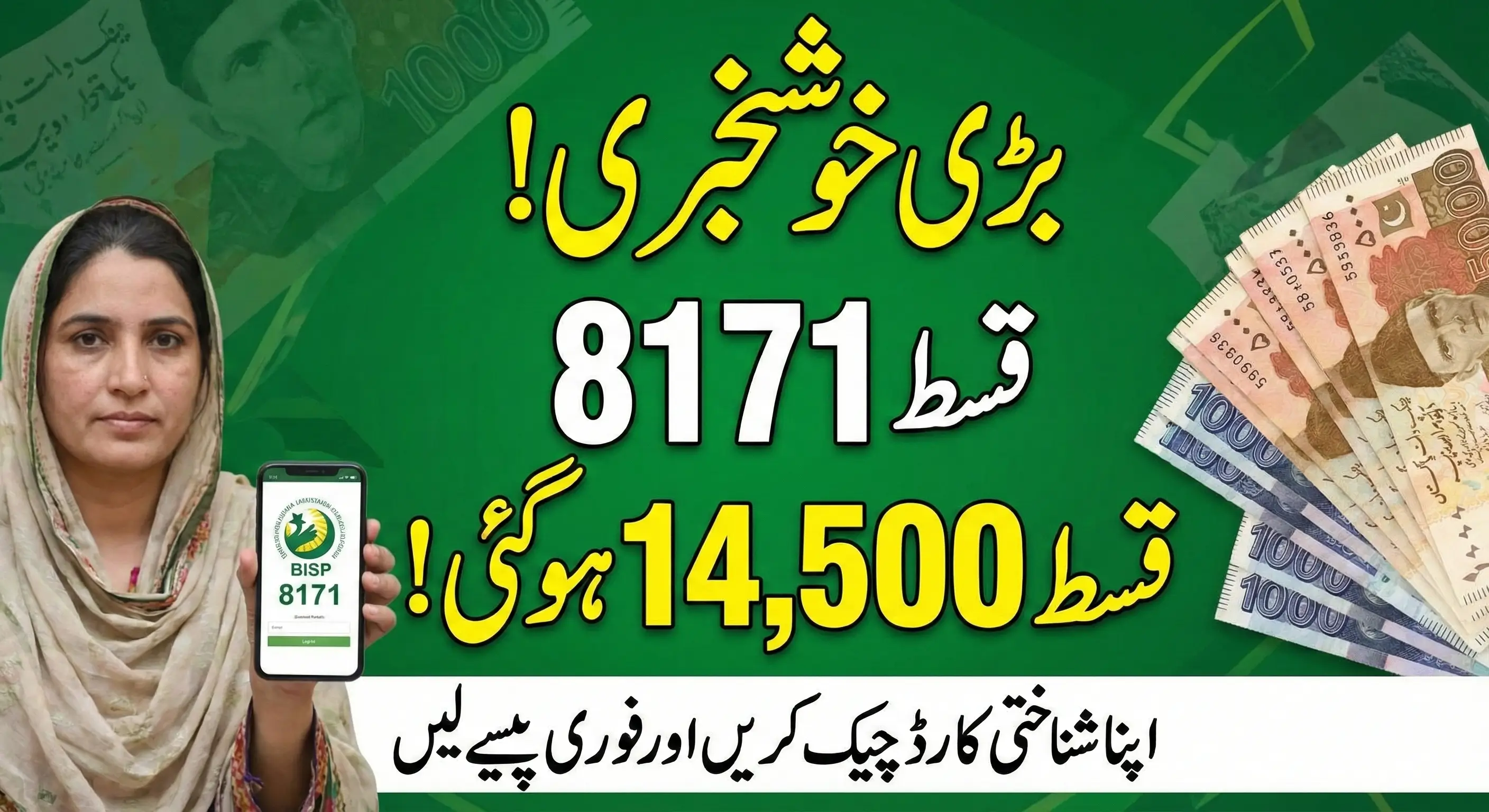 | 🔎 How to Check Status? | 🌐 Visit: 8171.bisp.gov.pk 📲 Enter 13-digit CNIC 🧩 Fill CAPTCHA & Submit 📩 Or SMS CNIC to 8171 |
