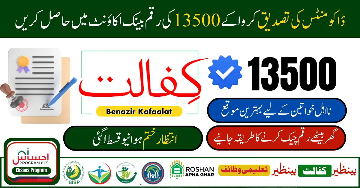 To get your documents verified in the Benazir Kafalat Program, you must get an amount of Rs. 13500. The complete procedure for getting the money will be explained to you here. How can you be sure of your eligibility? And you can get your financial assistance amount. The complete procedure for getting the money will be explained to you here. How can you be sure of your eligibility? And you can get your financial assistance amount.Β