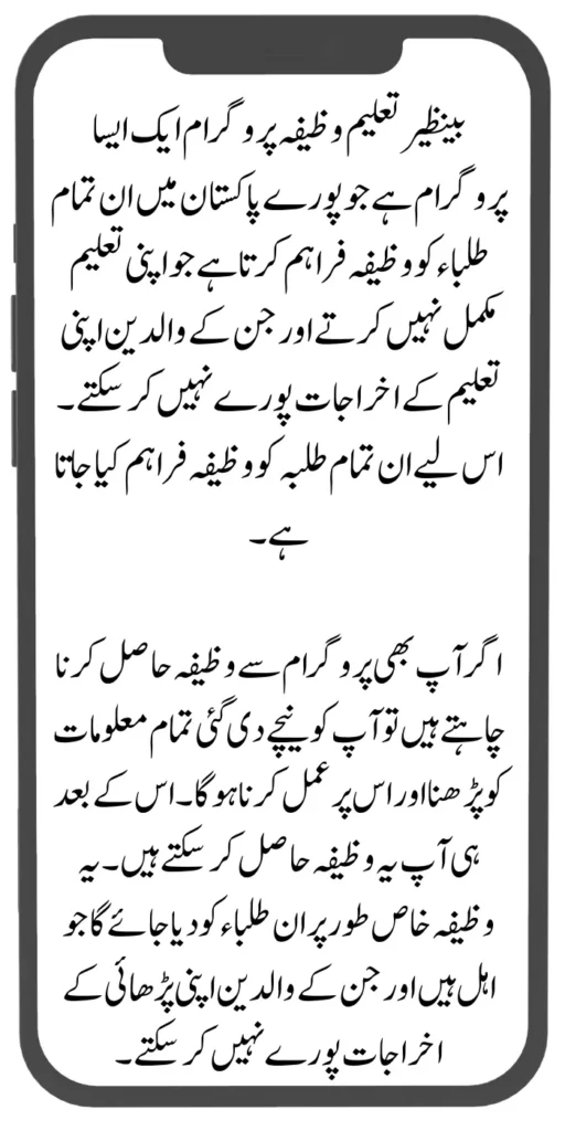 Benazir Taleemi Wazaif Program 2024