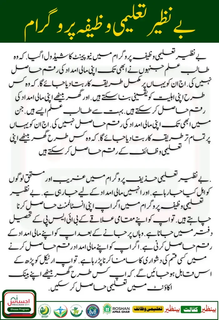 The latest update in the Benazir Educational Program. That is those students who have not yet ensured their eligibility. It is good news for them. Now new students are being qualified for the Benazir Educational Scholarship Program. They are being given financial aid money. If you can ensure your eligibility in the BISP program and get your financial aid money.