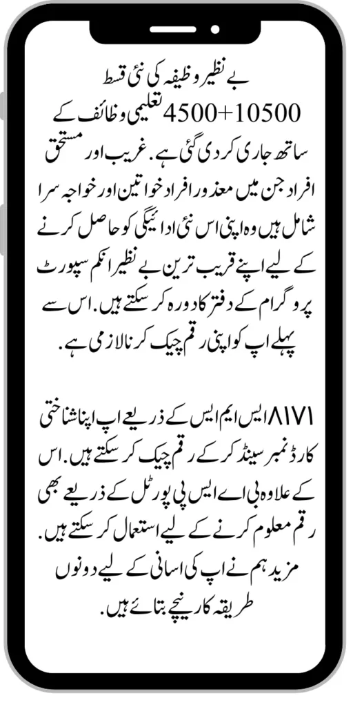 Check Benazir Wazifa Payment 10500+4500