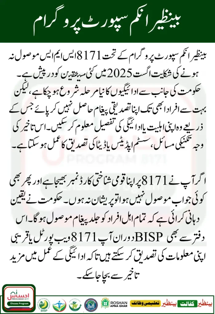 You Can Also Read ; BISP 8171 SMS Not Received August 2025