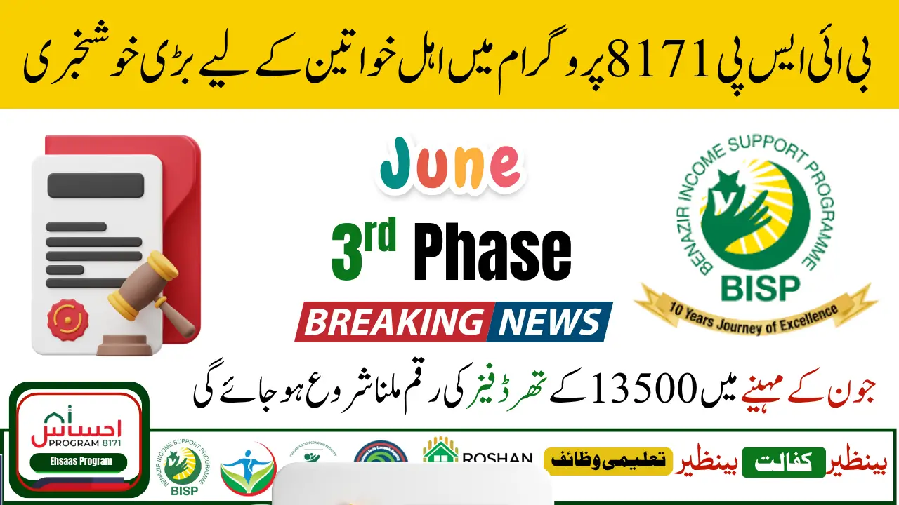 BISP Third Phase Payment June 2025 has announced the third phase of payments for June 2025, providing Rs. 13,500 to eligible families across Pakistan. This payment is intended to assist recipients in the run-up to Eid-ul-Adha, which is scheduled for June 6β10, 2025.