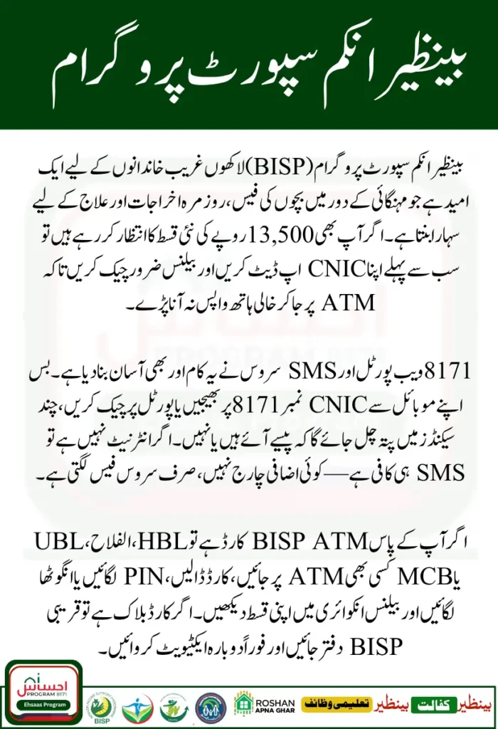 The main reason families should check their BISP ATM balance regularly is simple: you need to know if your latest installment which is now Rs. 13,500 per quarter in 2025 has been credited or not. Many people also rely on this money for important expenses, so knowing your balance saves you from wasted trips to ATMs or awkward surprises when you try to withdraw.