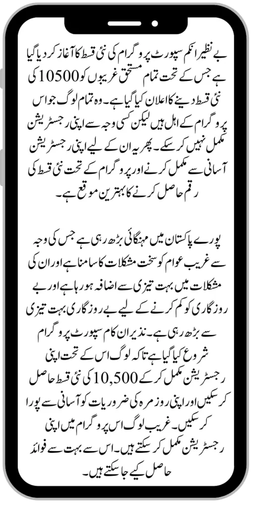 Inflation is increasing all over the country of Pakistan which is causing a lot of hardship to the poor people and their problems are increasing very fast and unemployment is increasing very fast to reduce the unemployment. Nazir In Kam Support Program has been launched so that people can complete their registration under it and get the new instalment amount of 10,500 and can easily meet their daily life needs. Poor people can complete their registration in this program. One can get many benefits from it.