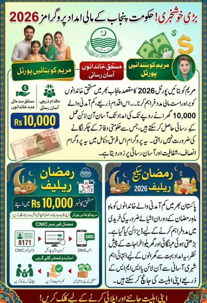 Maryam Ko Batain Portal 2026 has been launched to provide direct financial support to families in need across Punjab. This initiative is designed to help low-income households access Rs 10,000 in assistance through a simple online process. The program emphasizes fairness, transparency, and easy access, allowing citizens to apply without visiting government offices.