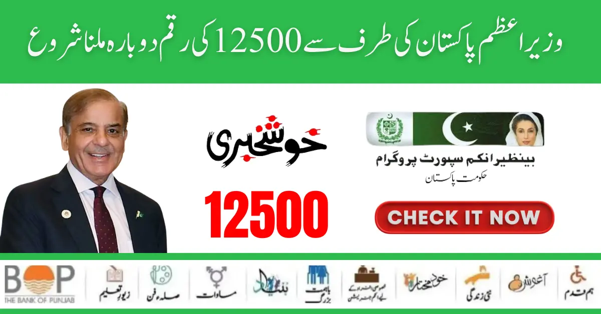 PM Pakistan has started Benazir 12500 rupees new amount for its distribution to all the poor families in Pakistan who are eligible, including widowed old people who are not earning. A new Benazir program of Rs 12500 has been launched for able-bodied and disabled persons and those families whose monthly income is so low that they cannot meet their household needs. are provided on our website.