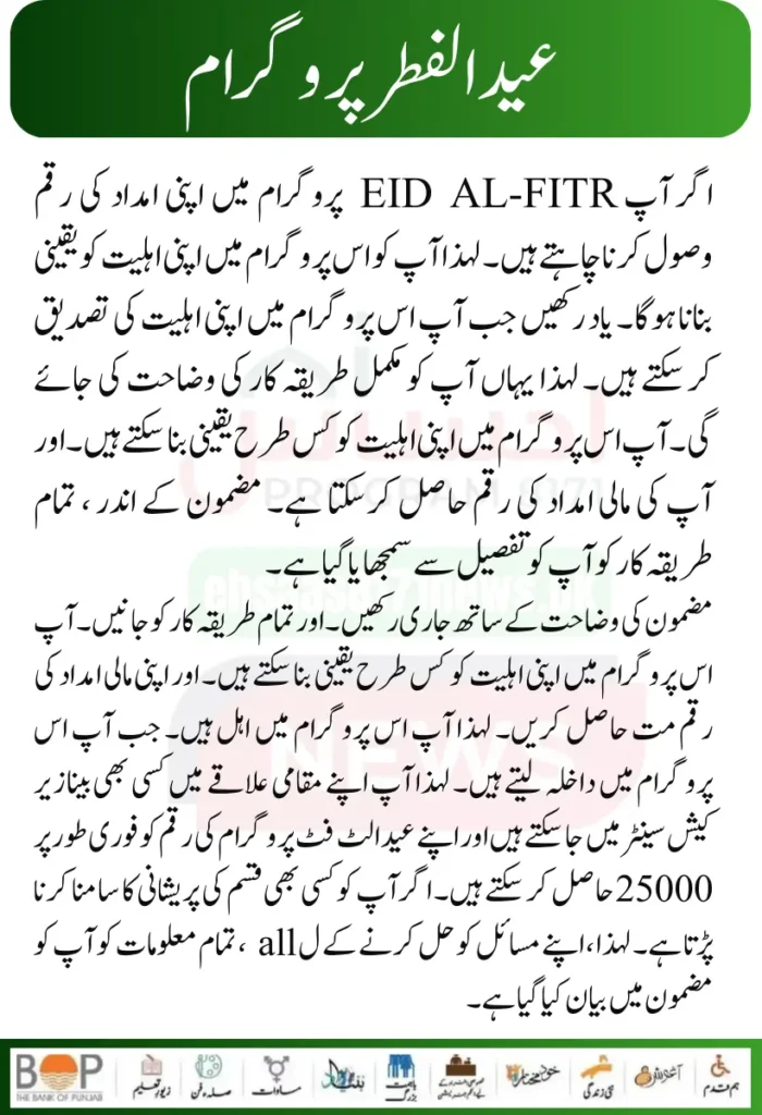 If you want to ensure your eligibility in this program. So the complete procedure will be explained to you here. How you can ensure your eligibility in this program. And can get your financial aid money. All the information has been explained to you in the article. How you can get your money of 25000 in the Eid UL Fiter Program. So the complete procedure has been explained to you here with explanation.